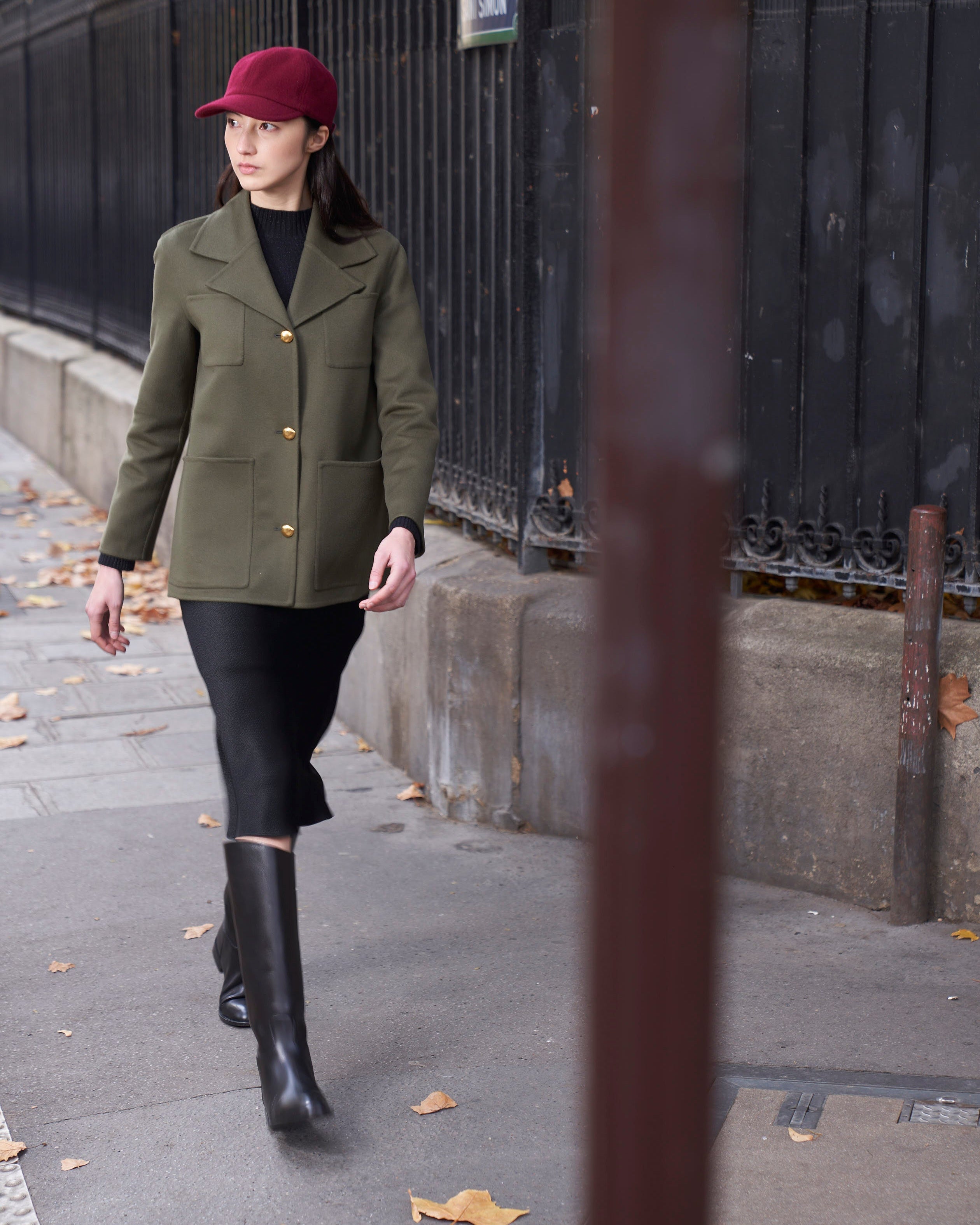 Crafted in Italy from double-face cashmere, the Kate Jacket features a minimal, straight cut and is accented with our signature gold-plated buttons designed by Goossens Paris.
