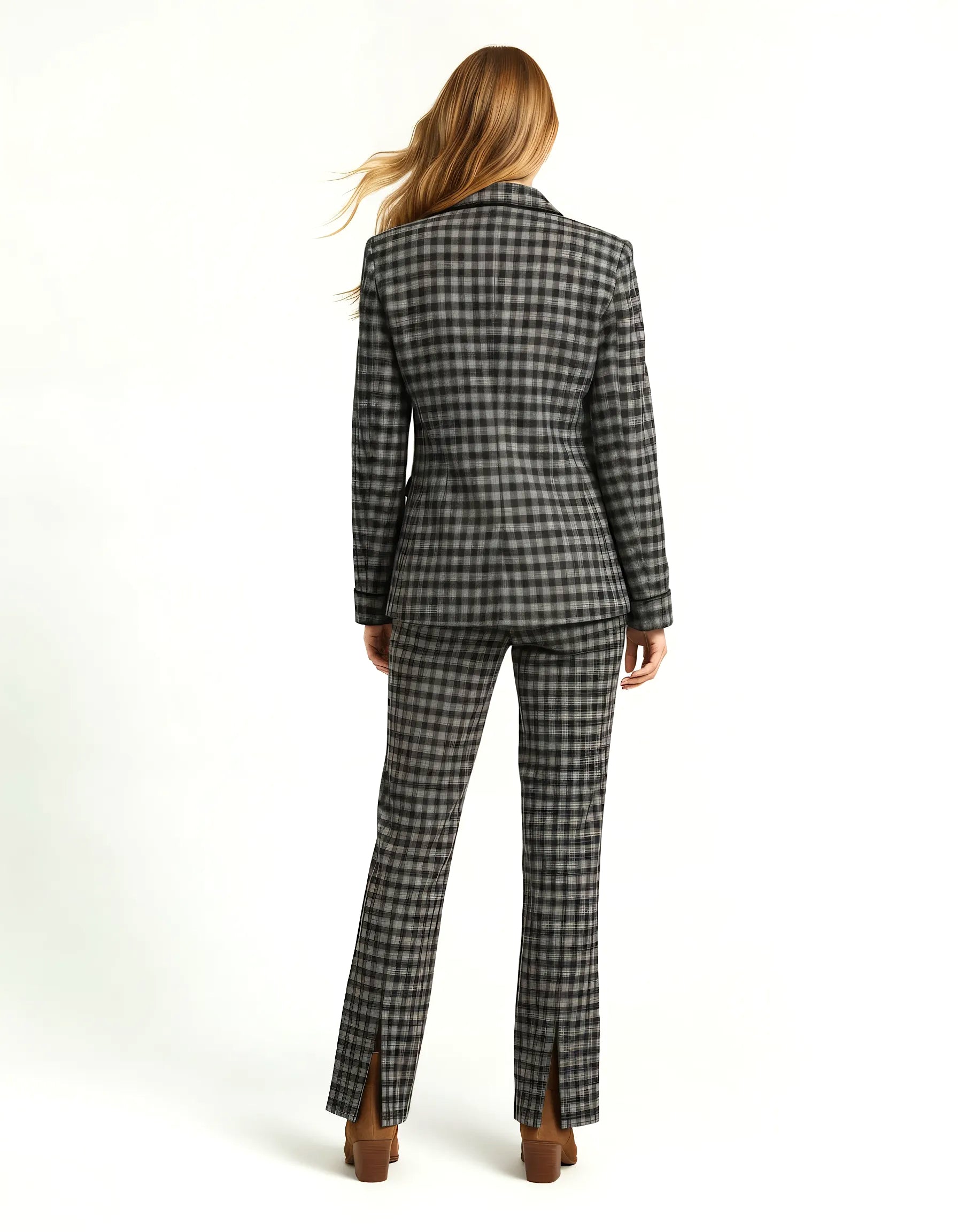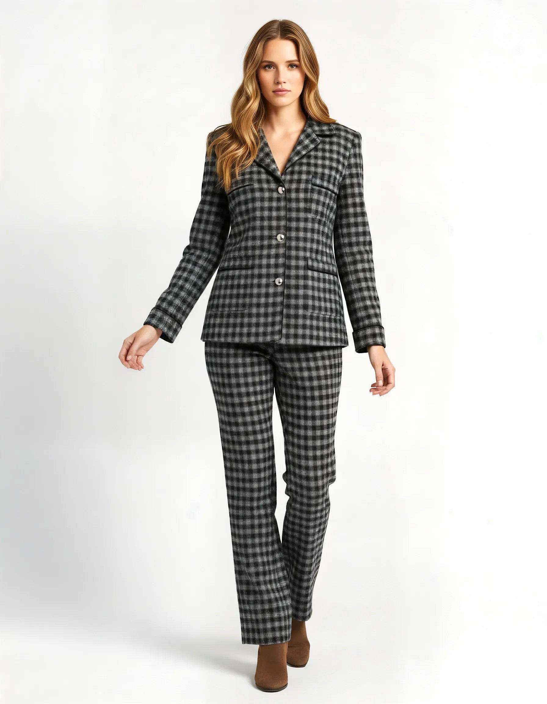 Handmade in Paris, the Anne Pyjama Jacket is crafted from pure cashmere in a Vichy check, accented with black piping. The silhouette is softly structured yet relaxed, allowing the jacket to drape elegantly against the body. A tailored collar, button front, and piped edges evoke classic loungewear codes reinterpreted through a modern lens.