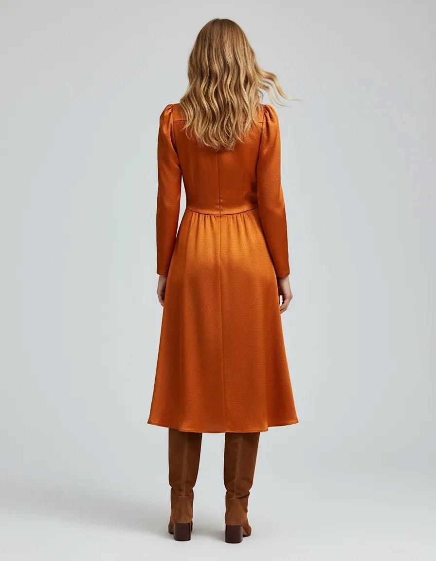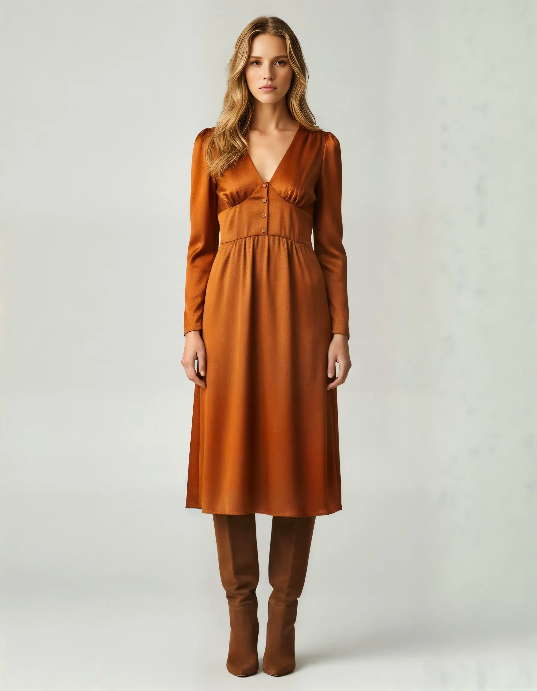 Crafted from sustainable satin, the Goldie Dress is introduced this season in a rich jewel tone. It features a button-down front with elegant, fabric-covered buttons and corset-inspired detailing at the bust. Made in Italy.