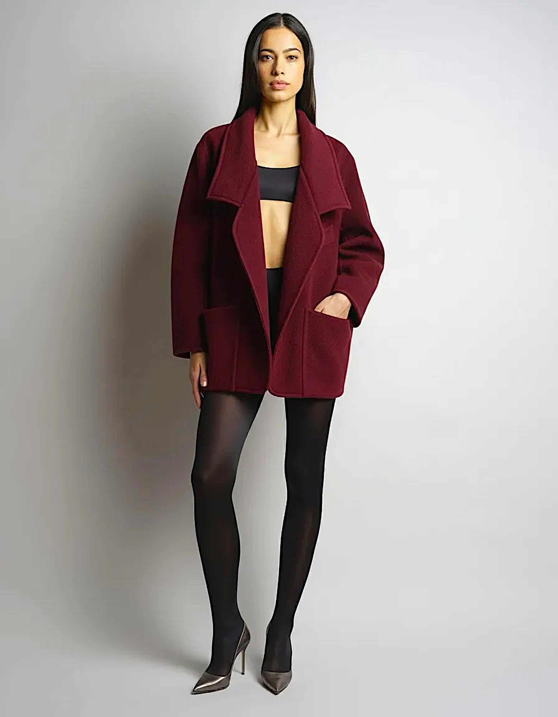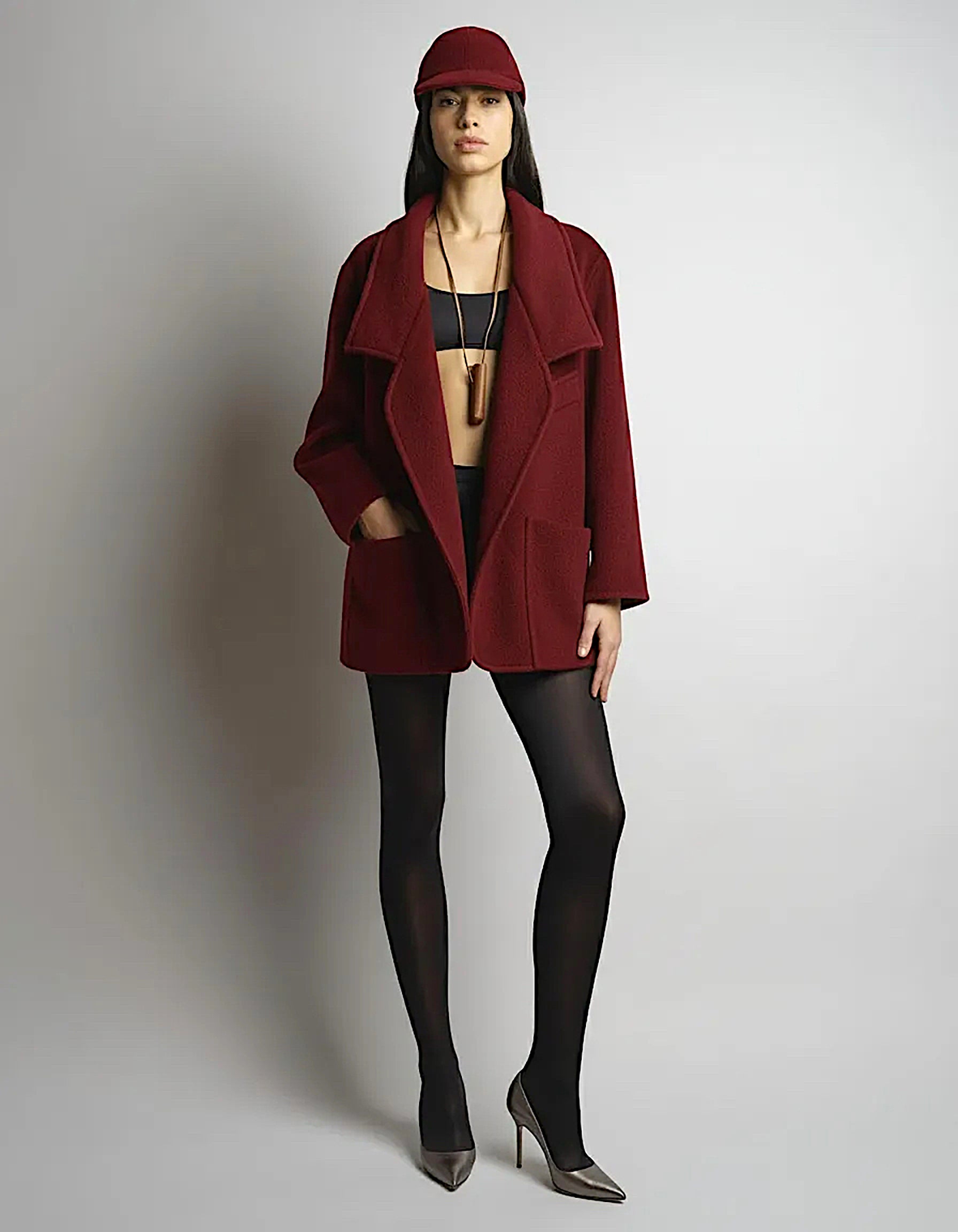 Handmade in Paris from double-face cashmere, the Henri Peacoat is reimagined this season in a new shade of Red. The silhouette is structured yet fluid, with a lightly padded collar that can be worn up or rolled down. Designed without a fastening, it drapes close to the body when open or may be belted to define the waist. Front pockets complete the design.